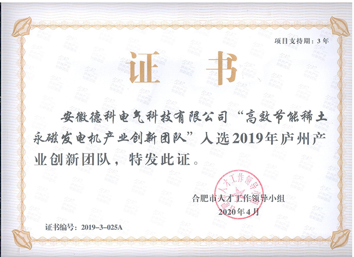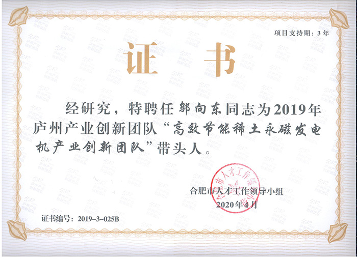 • 高效节能发电机研发创新团队